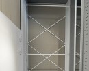 Разработали индивидуальную схему расстановки, подобрали оптимальные габариты и произвели высокие стационарные стеллажи серии СА с высотой 3200 мм. Каждый стеллаж оборудован двумя уровнями штанг для одежды и нижней полкой для хранения коробок.