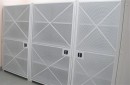 Сетчатые двери на закрывающихся стеллажах ограничивают доступ к хранимым документам и товарам, при этом позволяя легко видеть содержимое, что упрощает инвентаризацию и поиск нужных предметов.