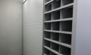 Жалюзи имеют центральный замок в нижней части. Они не занимают место в рабочем проходе между мобильными стеллажами.