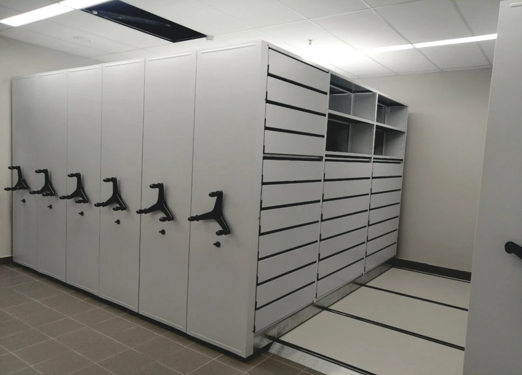 Архивные системы на рельсах обеспечивают компактное и эффективное хранение документов, позволяя значительно экономить пространство.