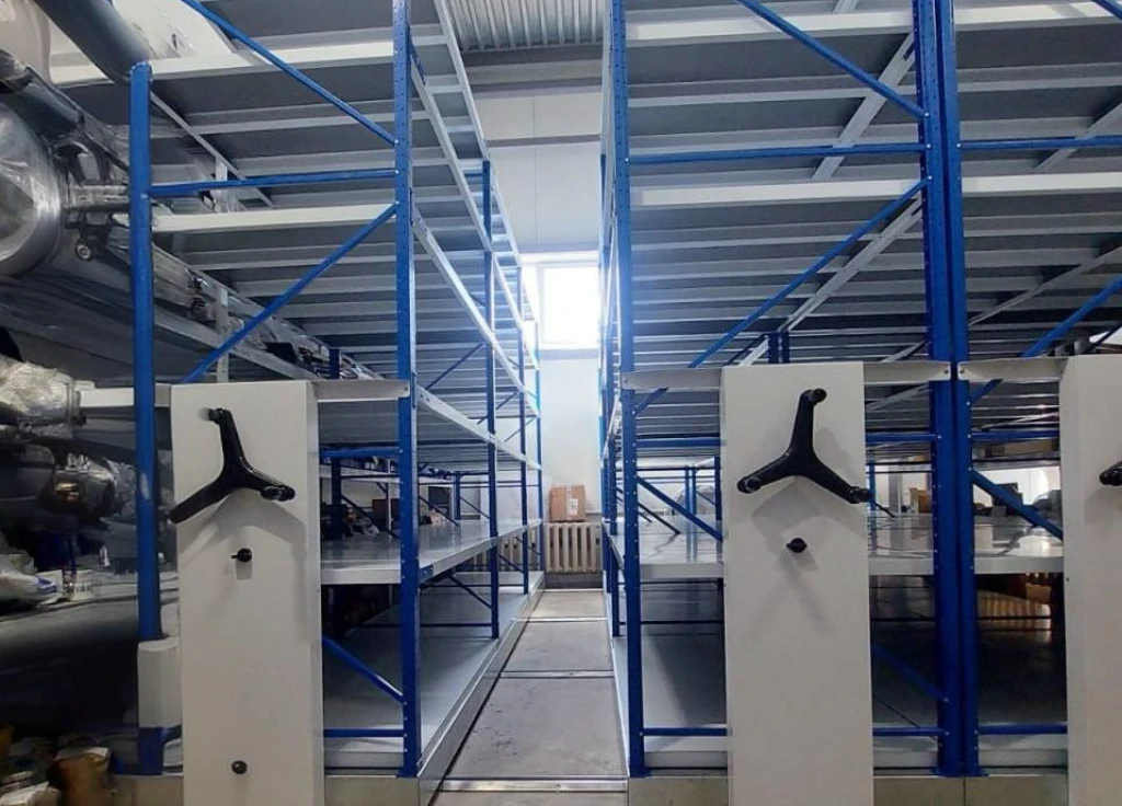 Передвижные стеллажи с усиленной мобильной базой с нагрузкой на полку до 350 кг. Помогают удобно и компактно разместить больший объем трубопроводной арматуры на складе, облегчают доступ к нужным деталям.